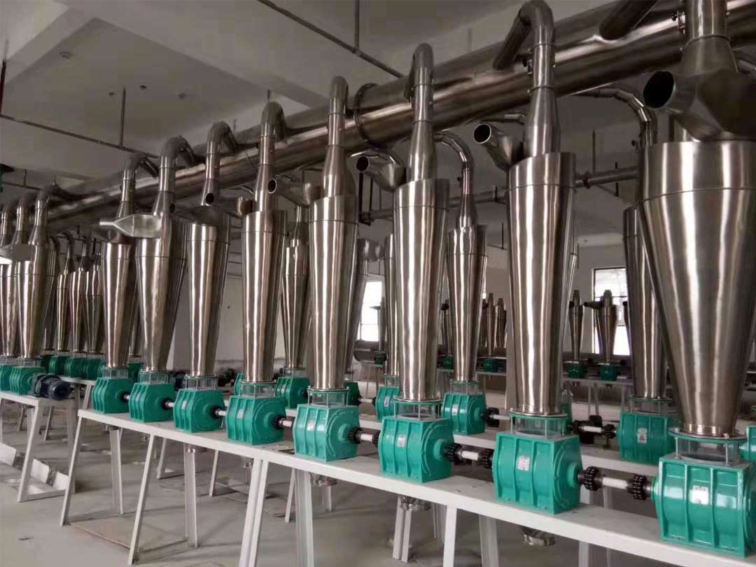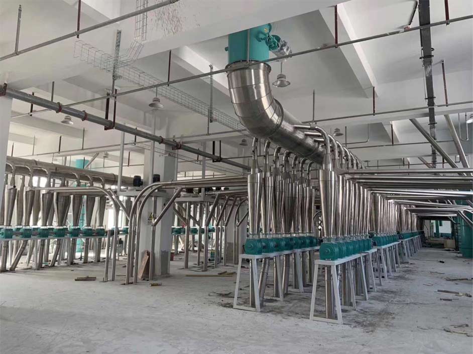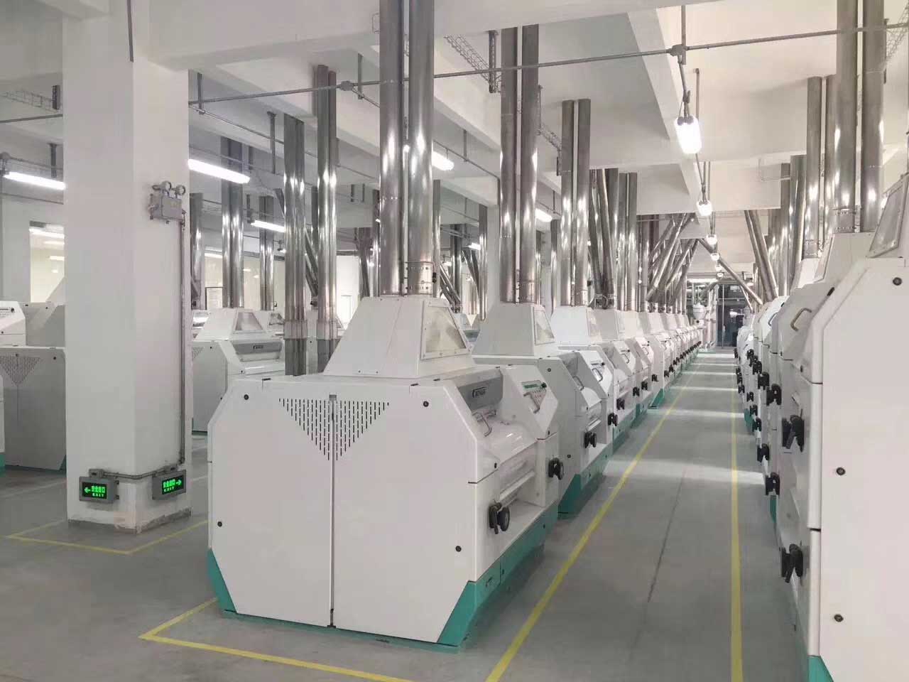 1000噸面粉加工設備,該工藝以小麥為原料,日處理小麥1000噸,是一條全自動生產(chǎn)線,清理、去石、打麥、除塵、著水、凈糧二次清理、輸送等工段。